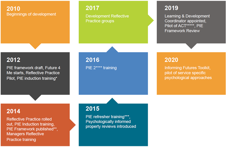 For us, there were multiple drivers for taking this step. Our leadership identified that PIE provided a practical approach that was responsive to the complex reality of young people’s lives, and supported us to keep young people at the centre of our work. At the same time, there was a growing focus on PIE within local commissioning, in recognition of the fact that PIE provides a collaborative device for effective multi-agency working.